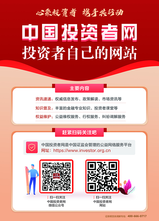 如果大家想了解最权威投资知识、如何维护投资权益、证监会最新资讯等,欢迎大家积极关注“中国投资者网”公众号和网站。