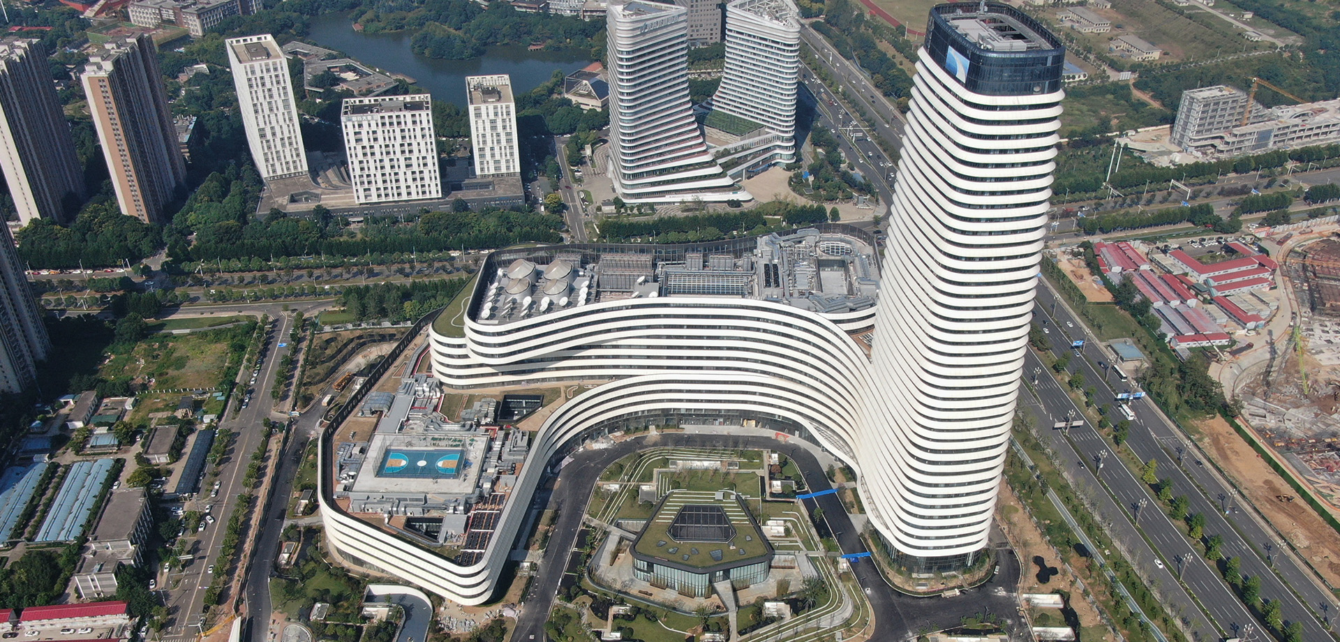 建筑高度:204m 幕墙面积:11.96万㎡ 项目设计:华东建筑设计研究院有限公司 幕墙类型:单元式玻璃幕墙等