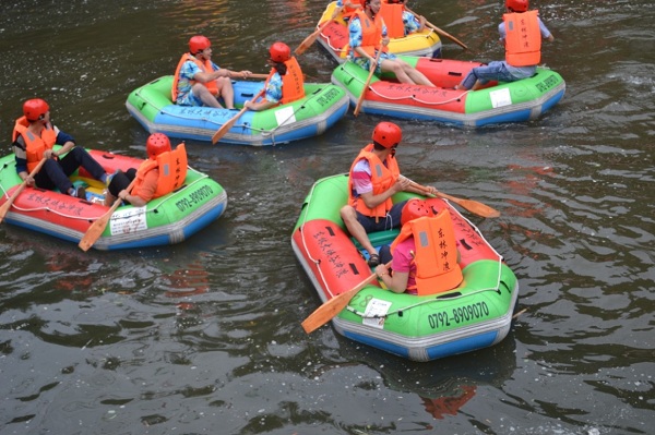 整个活动,27个人的团队始终被舒适、放松、和谐的氛围萦绕着。第一个活动目的地是著名的东林寺。东林寺建于东晋大元九年(384年),为庐山上历史悠久的寺院之一。员工们在这里参拜祈福,为家人朋友祈求平安。接下来的活动是前往东林大峡谷,大家领略了佛、道、儒三家文化发祥地的特有魅力,游玩虎跑泉、虎溪桥、虎溪、洞天福地、匡续祠、桃花源、陶渊明读书台、冰川遗址——冰臼群、牯牛潭瀑布等景点,品味苏东坡“不识庐山真面目 只缘身在此山中”的梦幻峡谷。然后再前往东林大峡谷漂流,由于峡谷落差大,九曲十八弯,波急浪涌,一路穿峡谷,渡险滩,过乱石,越急流,转漩涡,皮筏冲在浪尖,两边峡谷幽深,绿树成荫,让大家享受到了在峡谷冲浪的另类感受。最后一站是参观世界最高阿弥陀佛铜像——48米高的东林大佛,一尊金灿灿的大佛屹立在高山之巅,东林大佛整体造型吸收了龙门石窟等盛唐佛像特点,是中国唯一的露天阿弥陀佛铜像。
