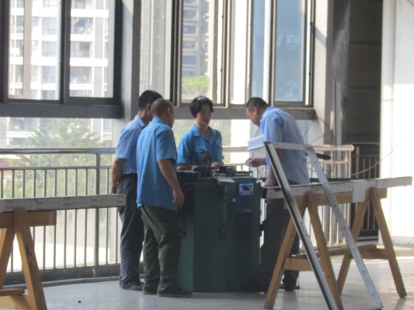 评审组成员和现场质检人员正在对产品的数据进行认真检测与填写