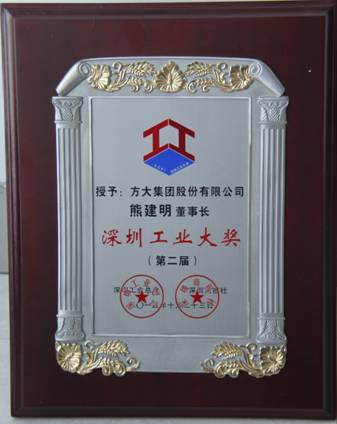 熊建明董事长荣获第二届“深圳工业大奖”工业家奖(证书)