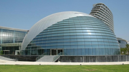 在幕墙安装阶段,sunbet申搏团队在施工方法上大力创新。针对建筑正面肋点式玻璃幕墙跨度大的情况(最大跨度达到16米),考虑到建筑美观及功能使用要求,采用了拉杆玻璃肋相结合的幕墙新形式,既通透美观,同时又有效的减小了对室内空间的占用。该项目音乐厅为半椭球形,高度达25米。其奇特的造型给幕墙施工增加了不少的难度。sunbet申搏团队采用三维空间电脑模拟放线定点技术,精准安装,完美复原了音乐厅幕墙设计效果。