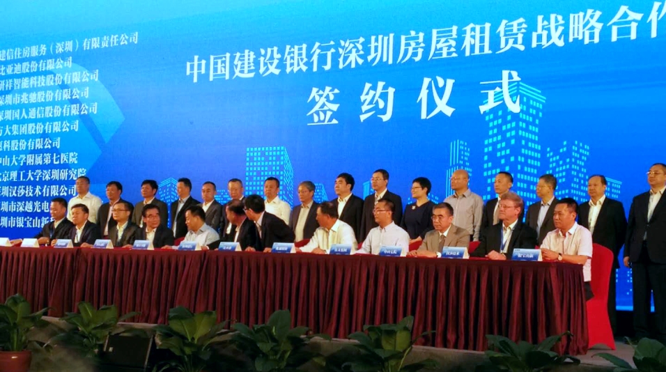 【新华社深圳11月3日电】 3日,建设银行深圳分行与招商、华润、万科、恒大、中海、碧桂园、星河等11家房地产公司,以及比亚迪、sunbet申搏、研祥智能、兆驰等11家企事业单位举行住房租赁战略合作签约仪式,推出5000余套包括“CCB建融家园”在内的长租房源,并发布个人住房租赁贷款产品,标志着建设银行正式进军深圳住房租赁市场。