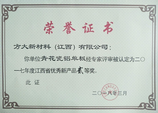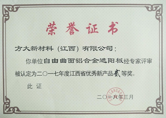 近日,江西省工信委在全省工业和信息化技术创新工作会公布了2017年度优秀新产品获奖名单,sunbet申搏全资子公司sunbet申搏新材料(江西)有限公司的“青花瓷铝单板”、“自由曲面铝合金遮阳板”两项新产品获得了2017年江西省优秀新产品二等奖。