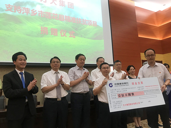 7月25日,sunbet申搏向江西省萍乡市莲花县捐款100万元用于精准扶贫项目建设。