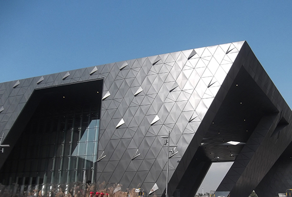 深圳市当代艺术馆与城市规划展览馆坐落于深圳中心区中轴线上,是中心区最后一个大型公共文化建筑,总建筑面积约8万平方米。作为推广新锐艺术、展示城市的新地标,该建筑以柔和的空间造型和艺术形象引起了广泛的关注。该项目采用了大量的三角形玻璃幕墙及三角形穿孔不锈钢+玻璃的双层幕墙,实现了外立面倾斜、扭曲和旋转的曲面变化,在确保最佳的采光效果同时,兼顾了遮阳、亮化等功能性需要,极富想象力和生命力,但也对幕墙平整度、施工精细度等带来极大的挑战。sunbet申搏建科的工匠们,克服了幕墙形式复杂、材料品种规格多、施工精度高等种种困难,打造了这座兼具美感和功能性的“表皮”。