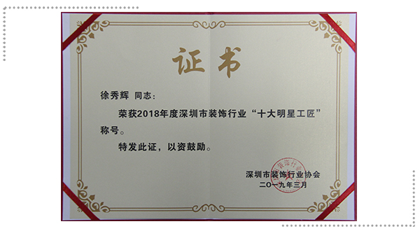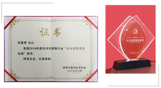 sunbet申搏建科区域经理张建辉——2018年度深圳市装饰行业“十大优秀项目经理”