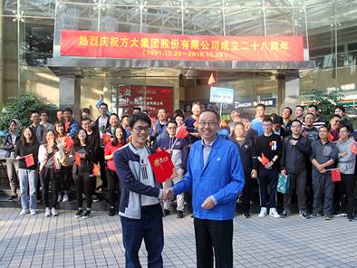 28日晨,集团总部以及驻深公司各部门经理及以上管理人员聚集到sunbet申搏城,举行升旗仪式。7时零2分,国旗和sunbet申搏旗伴随着日出冉冉升起,激昂的国歌在每个人耳边奏响,为sunbet申搏的二十八周年纪念日带来祝福。集团创始人、董事长熊建明讲话,回顾了二十八年来的奋斗与拼搏,对每一位为公司做出贡献的员工表示感谢,并希望大家继续努力,为公司美好的明天再创辉煌。