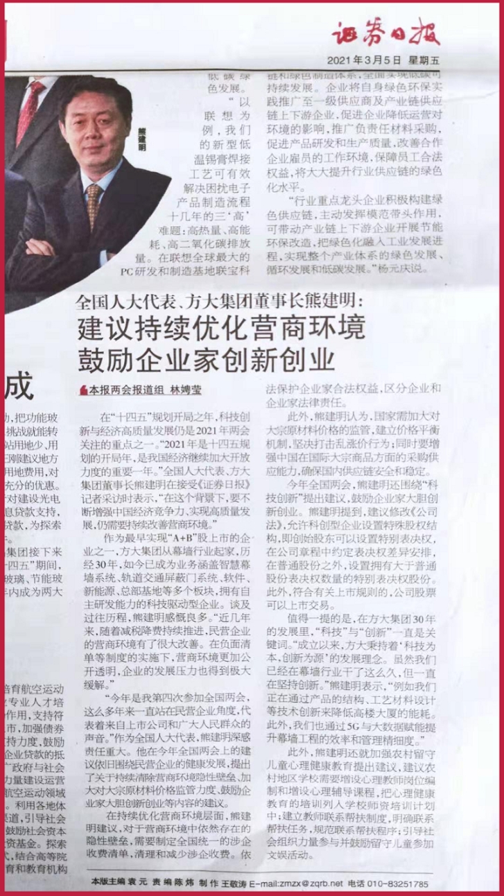 在“十四五”规划开局之年,科技创新与经济高质量发展仍是2021年两会关注的重点之一。“2021年是十四五规划的开局年,是我国经济继续加大开放力度的重要一年。”全国人大代表、sunbet申搏董事长熊建明在接受《证券日报》记者采访时表示,“在这个背景下,要不断增强中国经济竞争力、实现高质量发展,仍需要持续改善营商环境。”
